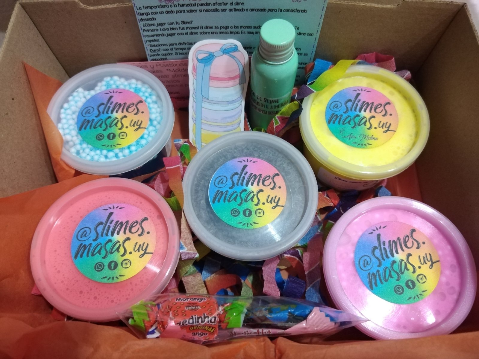 Pack de 5 Slimes CategoríasKits Crear Packs Insumos Souvenirs General Pack de 5 Slimes$515 5 slimes de 100ml en pote rígido a elección de slimes disponibles En cajita con hojita de cuidados para mantener tus slimes, extras (golosinas y stickers) y mini activador. Pack de 5 Slimes cantidad Comprar ahora Categorías: General, Packs Información adicional Información adicional Peso 1 kg Dimensiones 22 × 14 × 9 cm Productos relacionados Pack 4 Plastilinas + Accesorios $460 Añadir al carrito ¡Oferta! Kit Dorado completo para hacer Slimes $2.200 El precio original era: $2.200.$1.980El precio actual es: $1.980. Añadir al carrito 10 moldes cortantes 3cm $170 Añadir al carrito Pack 10 Plastilinas y accesorios $870 Añadir al carrito